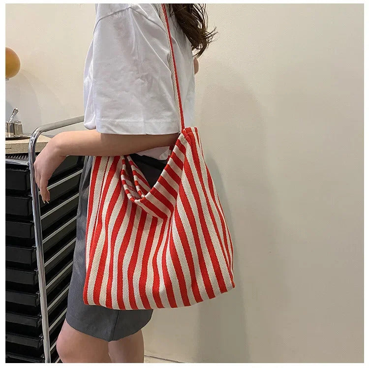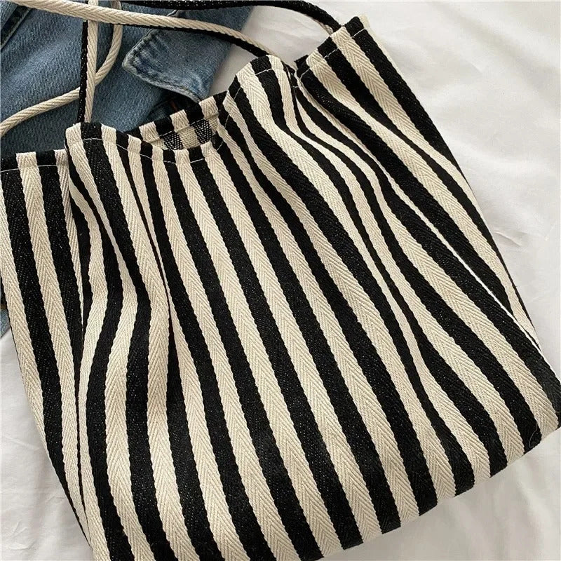 • Striped Canvas Material : Crafted from striped canvas, this bag combines durability with a casual, trendy vibe.