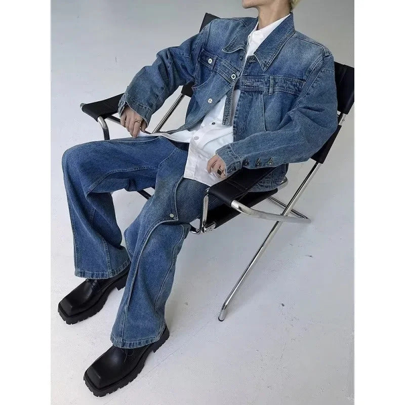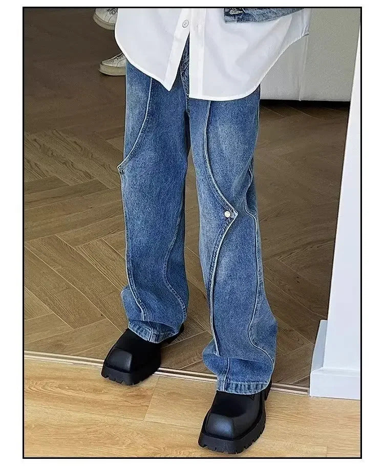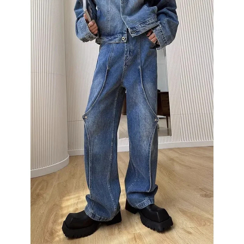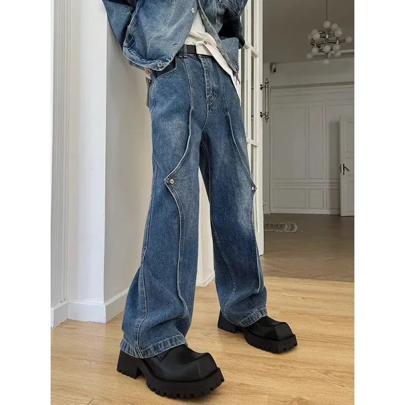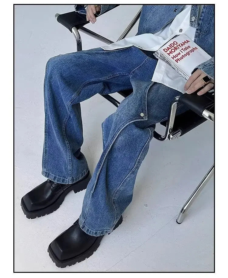 牛仔裤男Vintage Jeans Autumn Trendy Brand High Street Loose-Fit Straight-Leg Long Pants Men's Draped Bell Bottoms From China