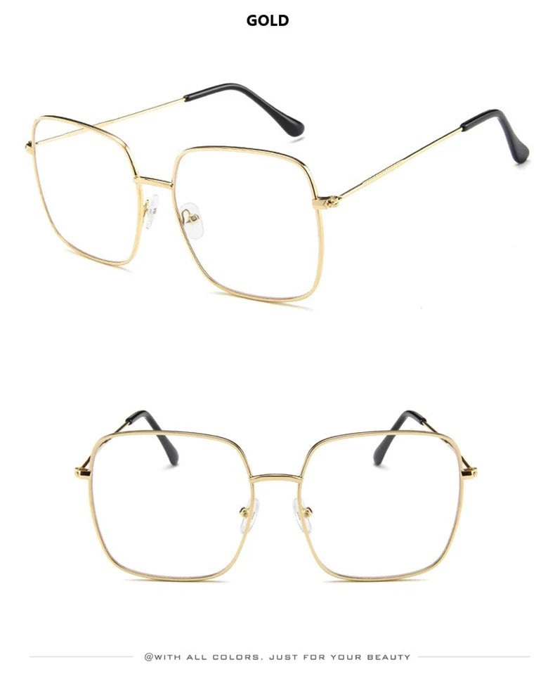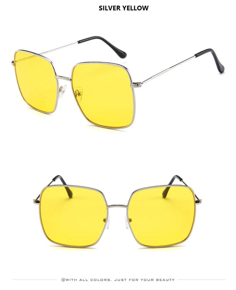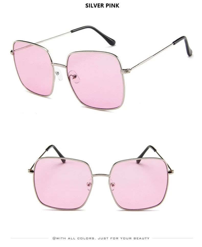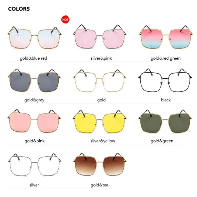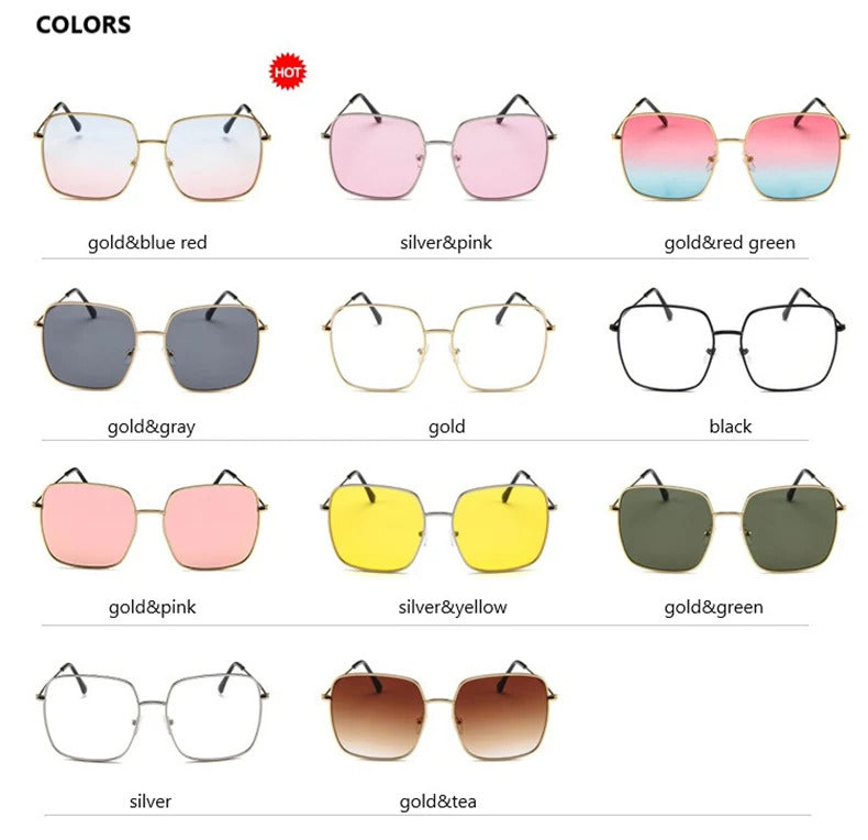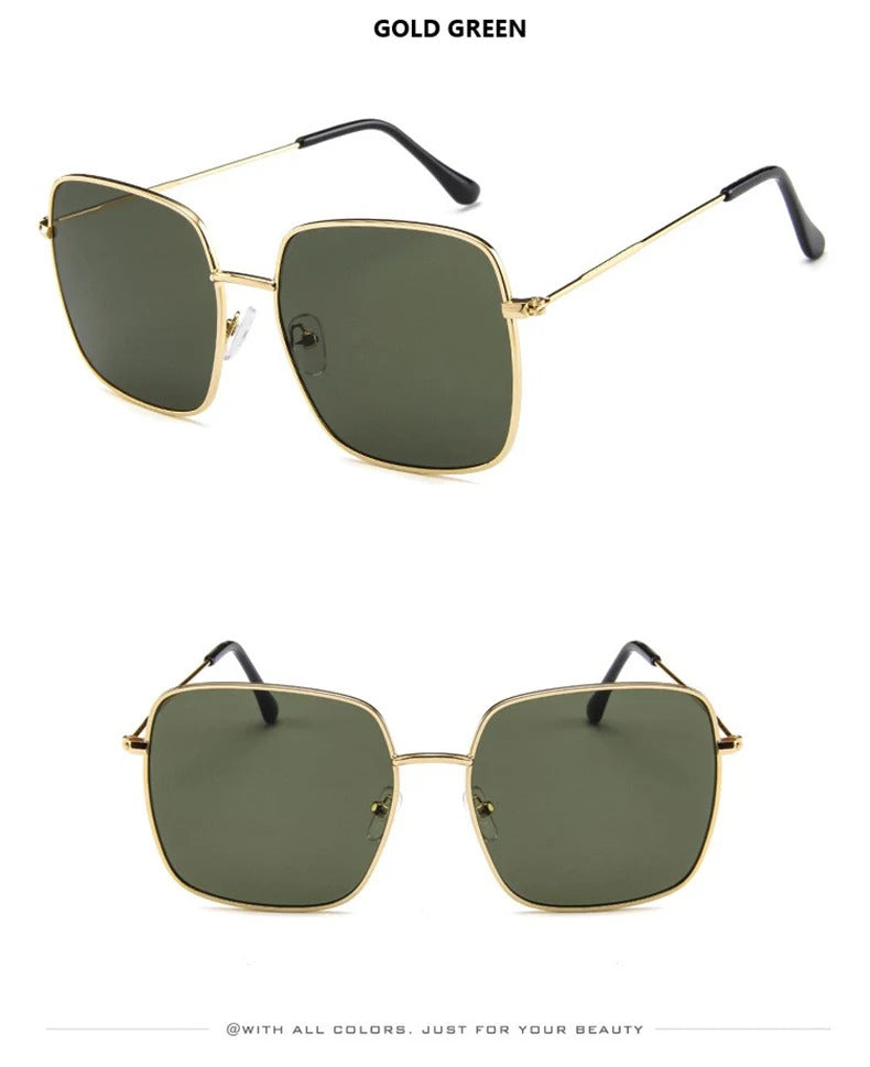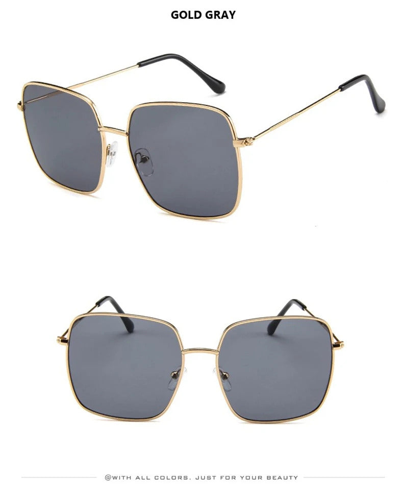 眼镜女Vintage Oversized Shades Women Sunglasses Fashion Metal Square Alloy Frame Sunglasses Female Retro Sun Glasses Oculos Feminino