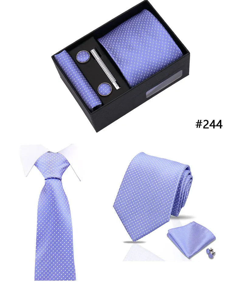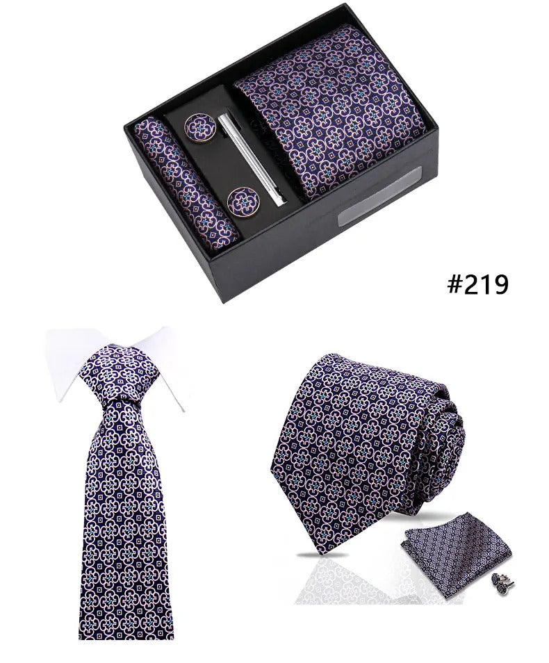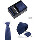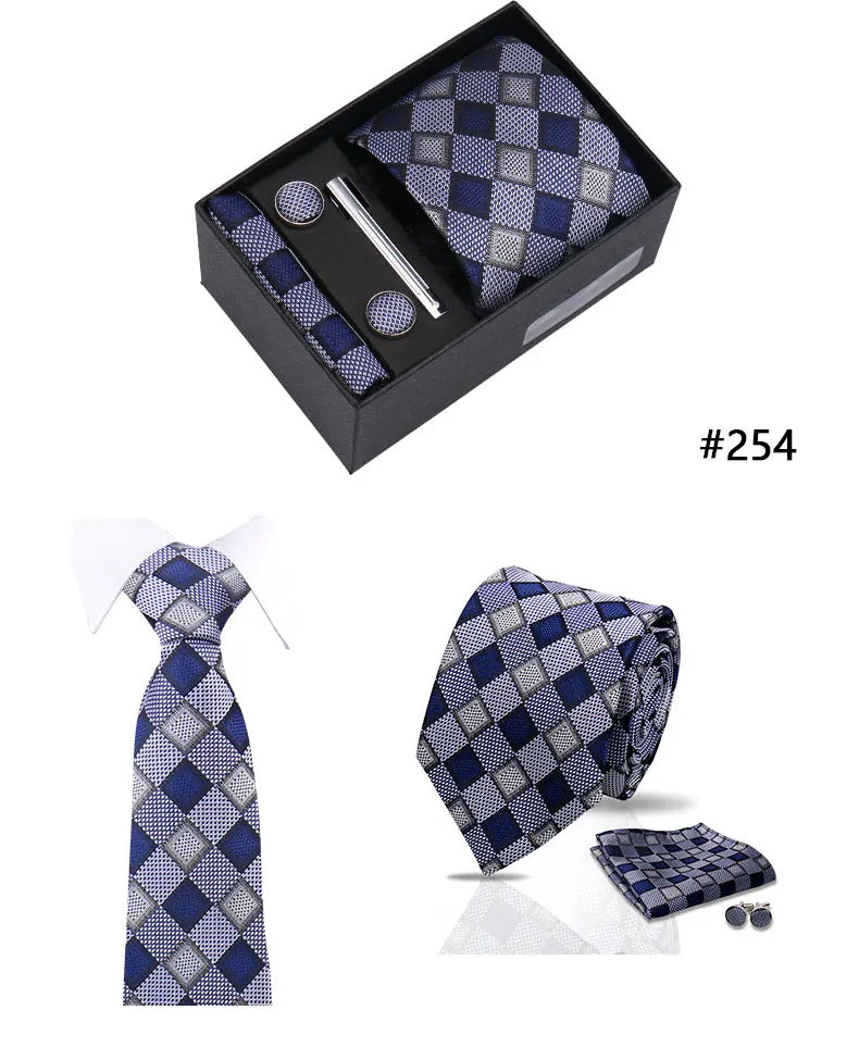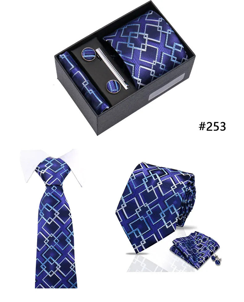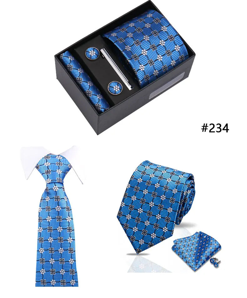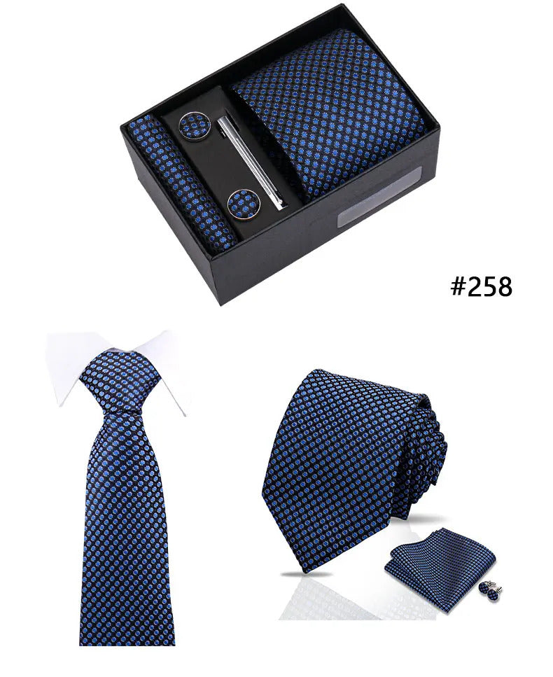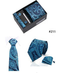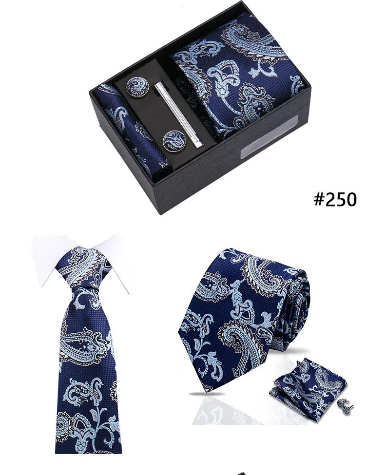 领带男Wedding Gift Tie Wholesale New Style Pocket Squares Set Cufflinks Tie Clip Necktie Box Men Fit Wedding Blue Paisley Black Boxs