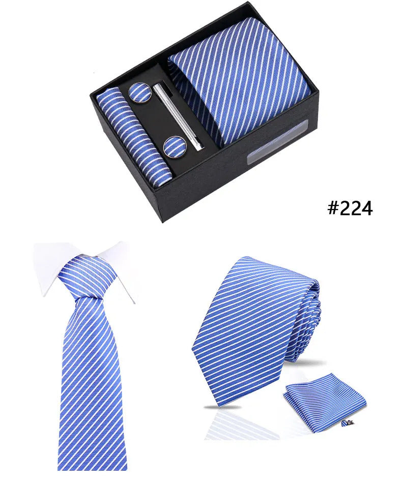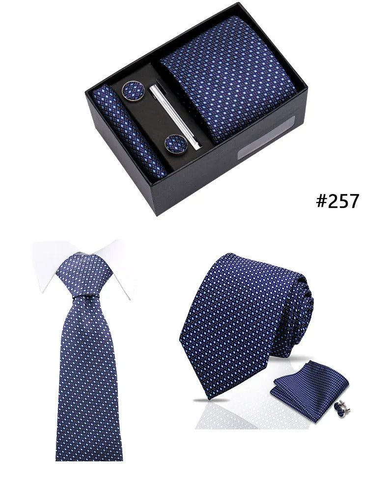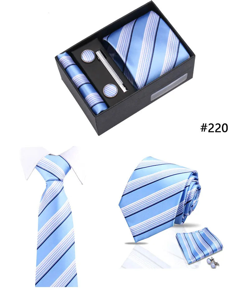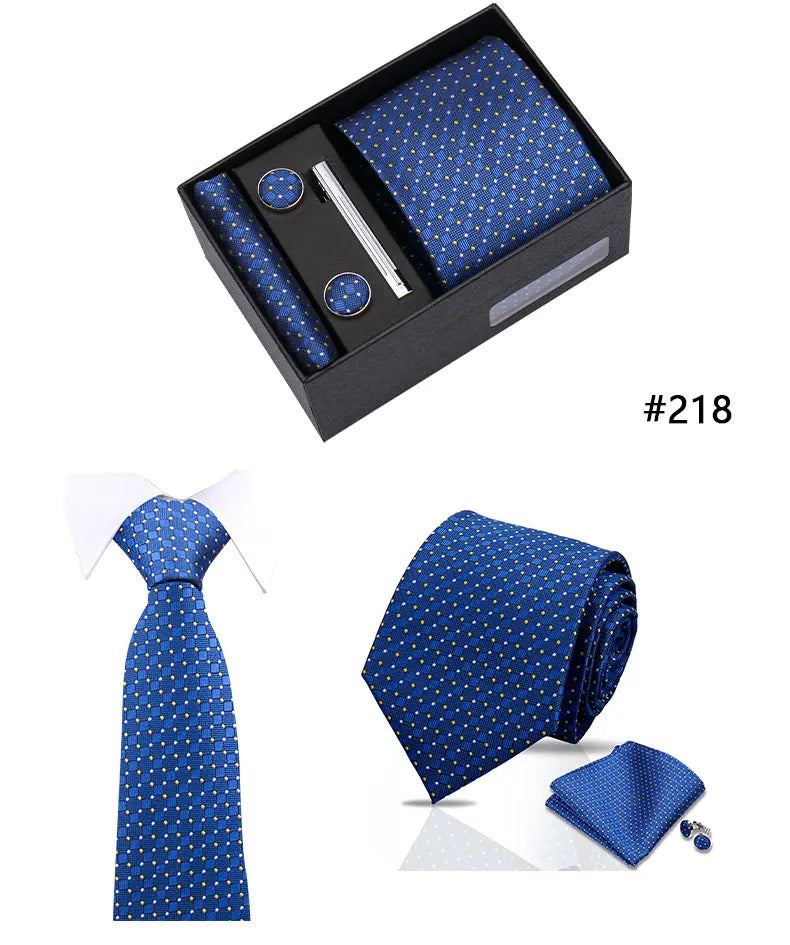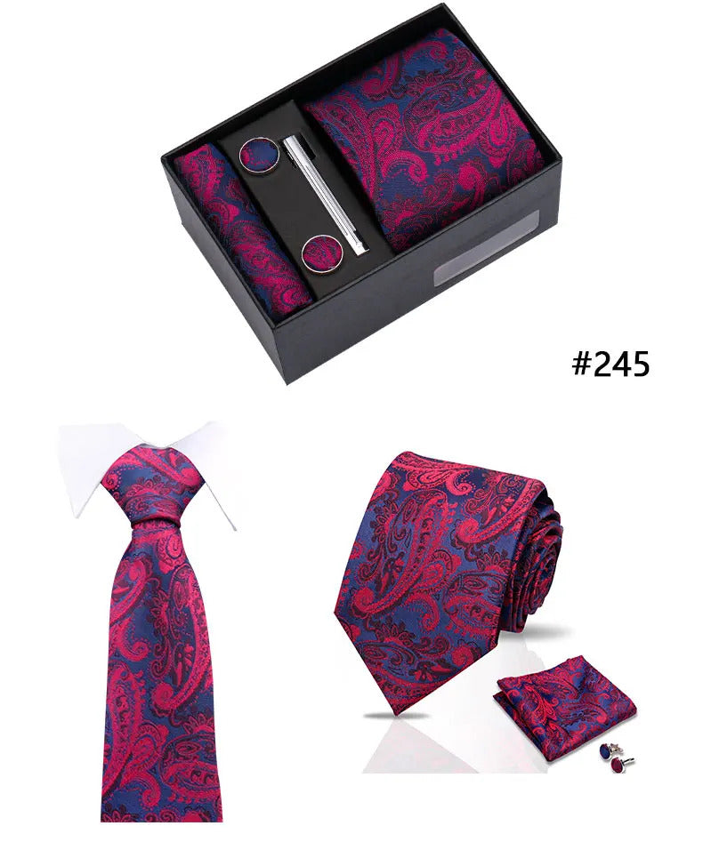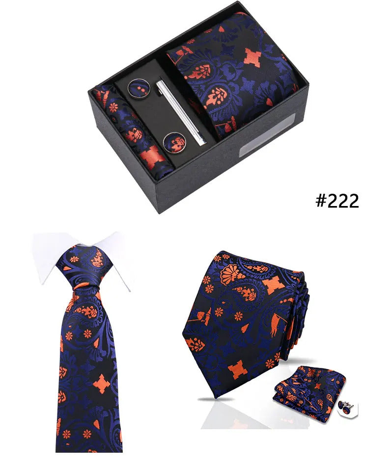 领带男Wedding Gift Tie Wholesale New Style Pocket Squares Set Cufflinks Tie Clip Necktie Box Men Fit Wedding Blue Paisley Black Boxs