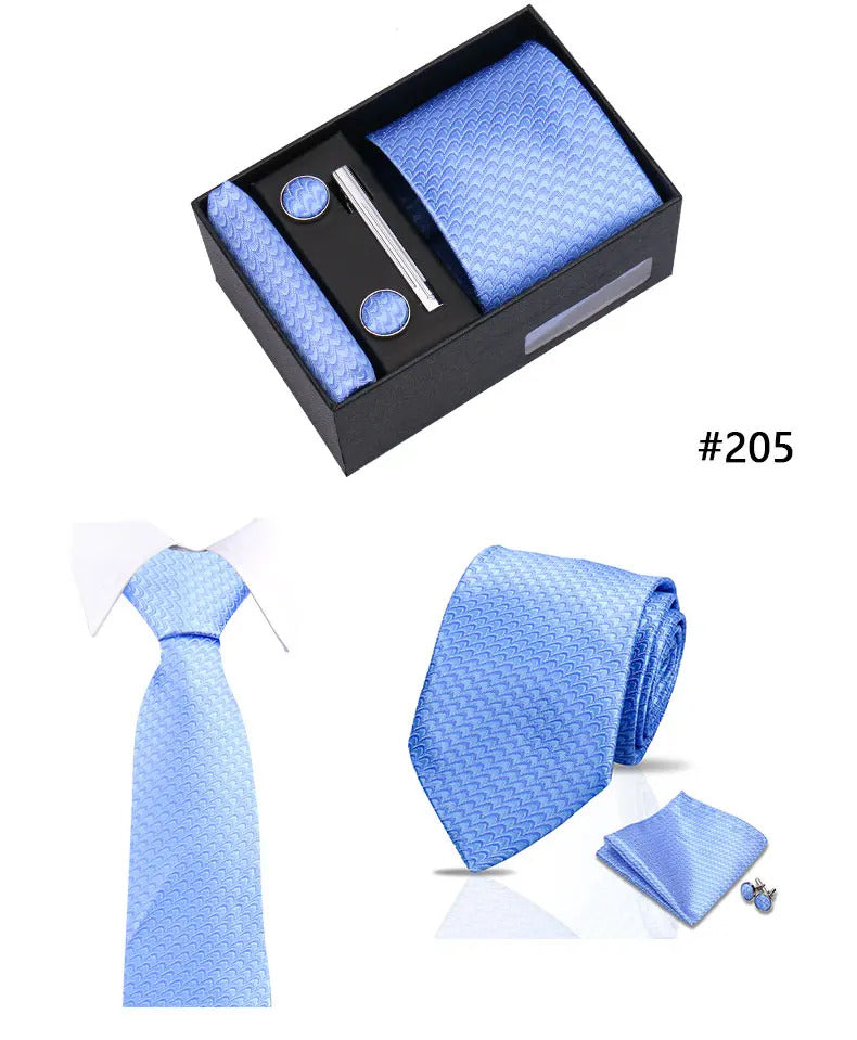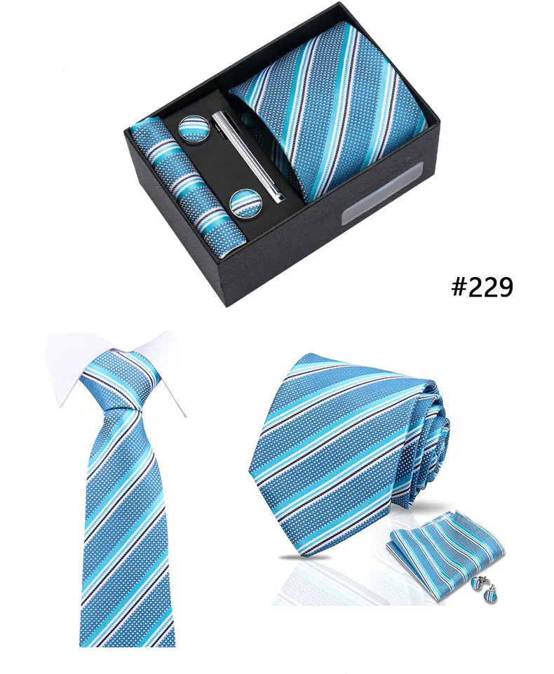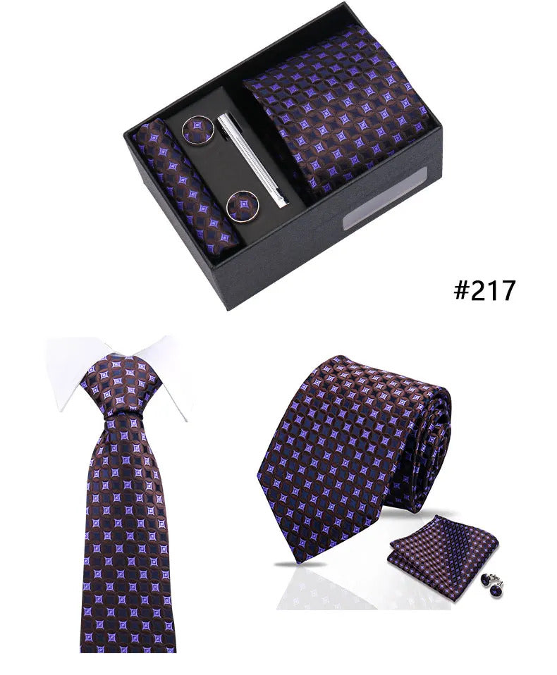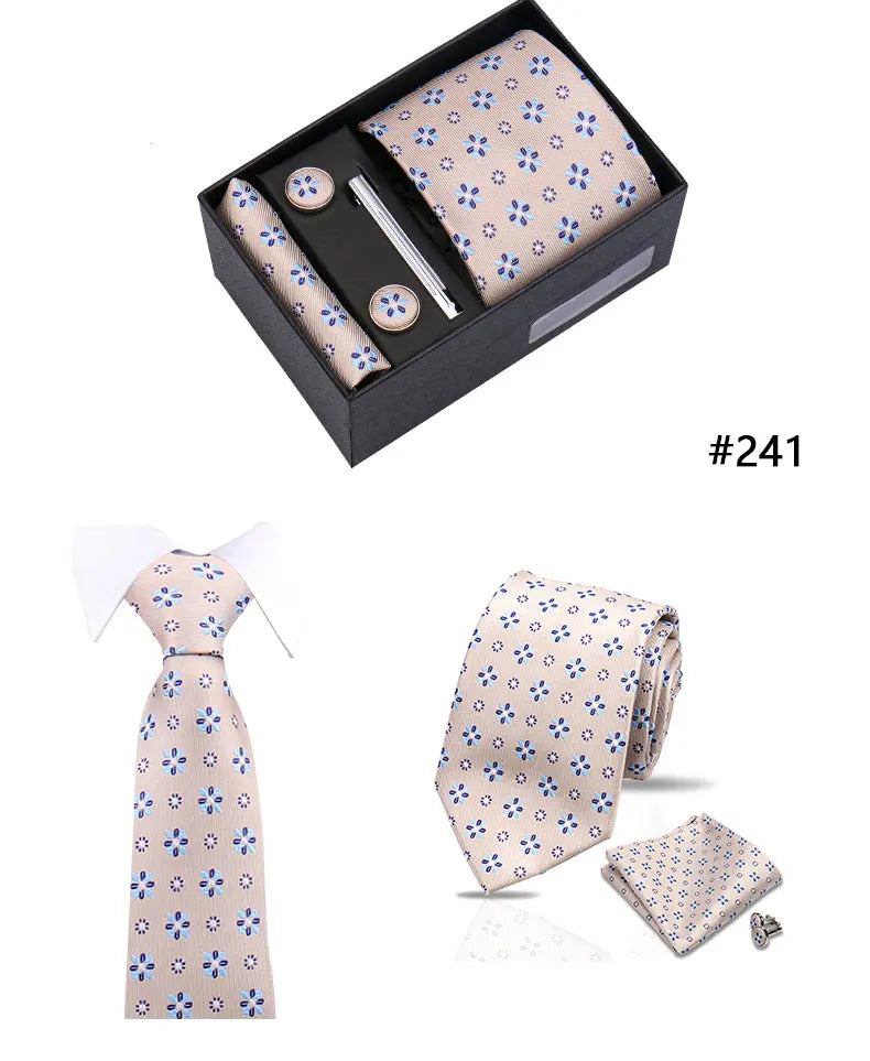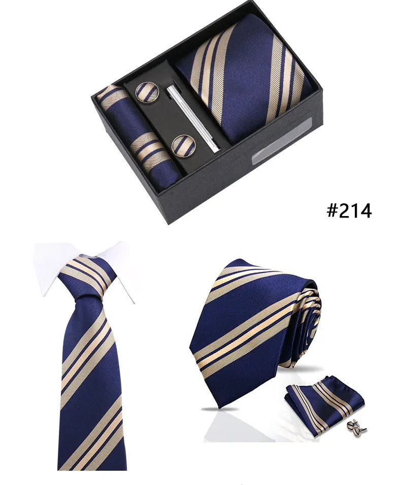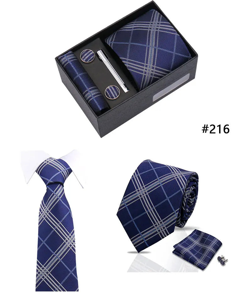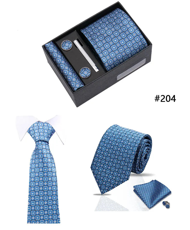 领带男Wedding Gift Tie Wholesale New Style Pocket Squares Set Cufflinks Tie Clip Necktie Box Men Fit Wedding Blue Paisley Black Boxs
