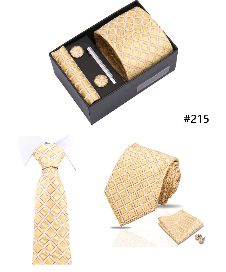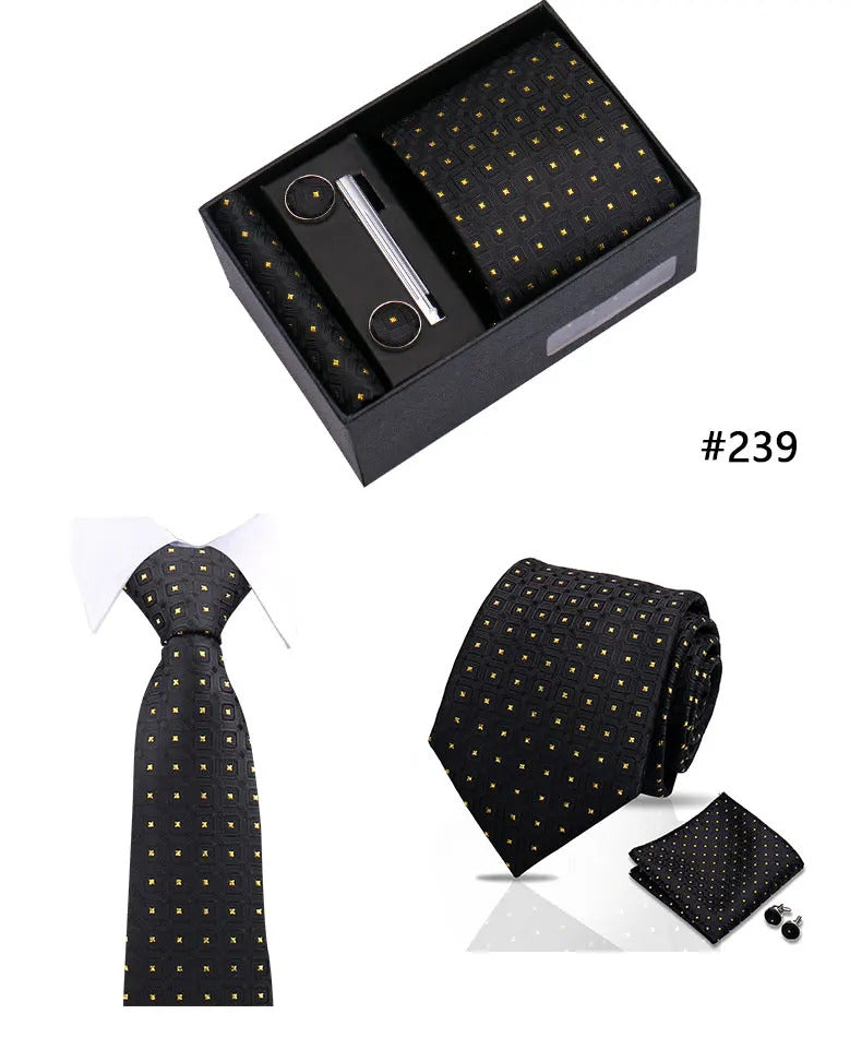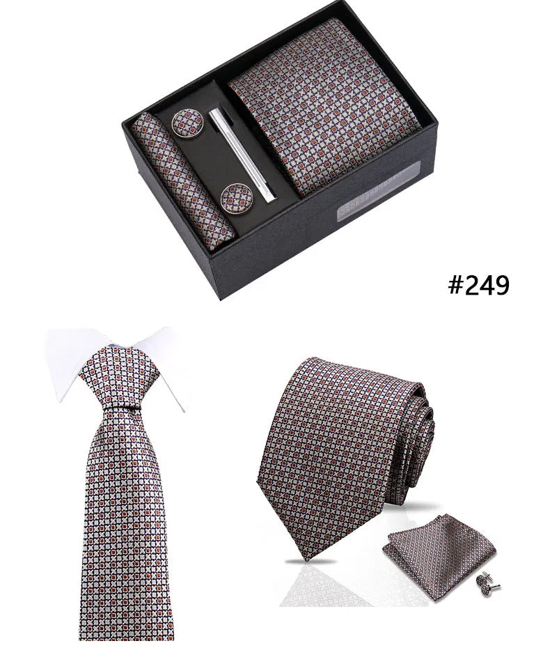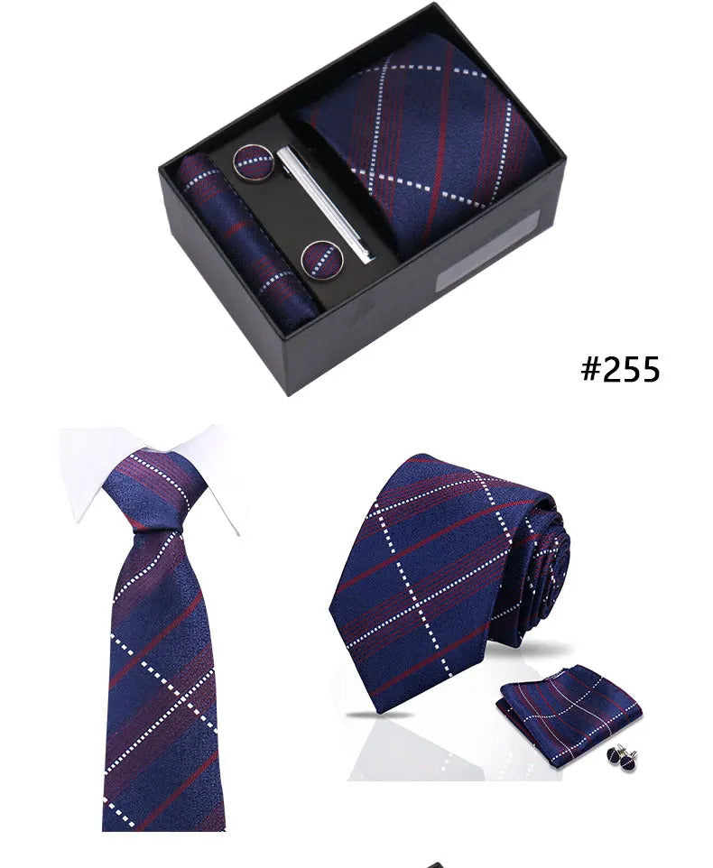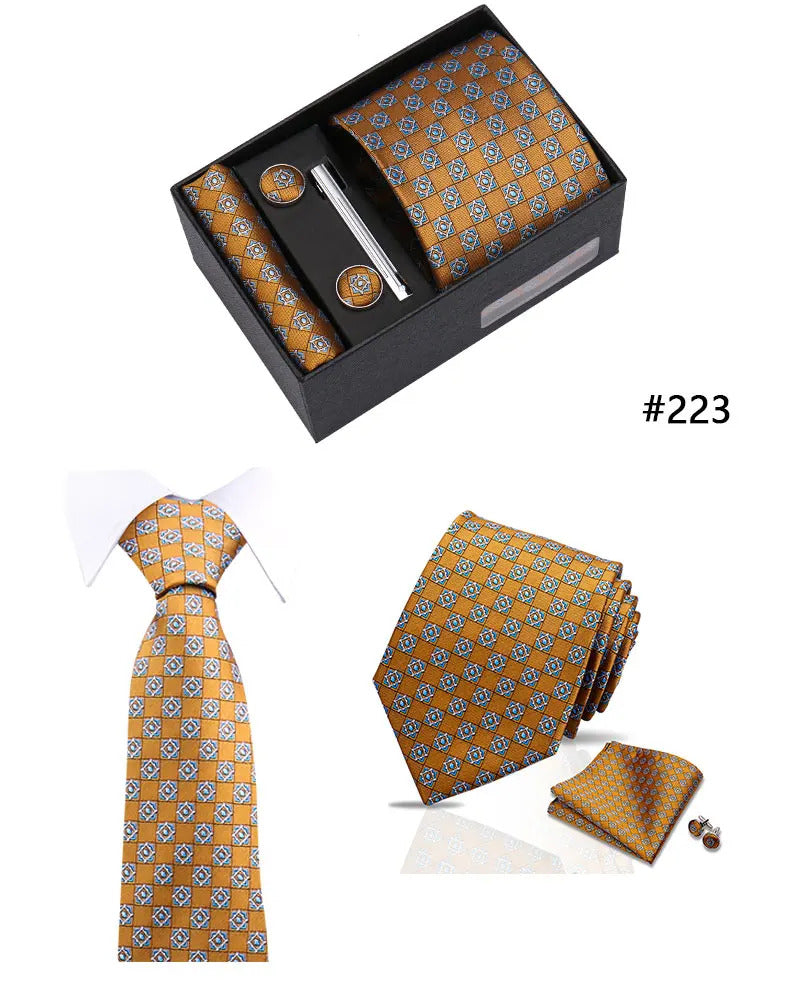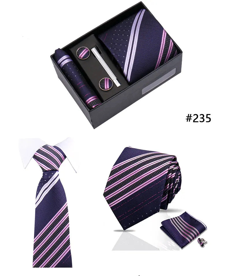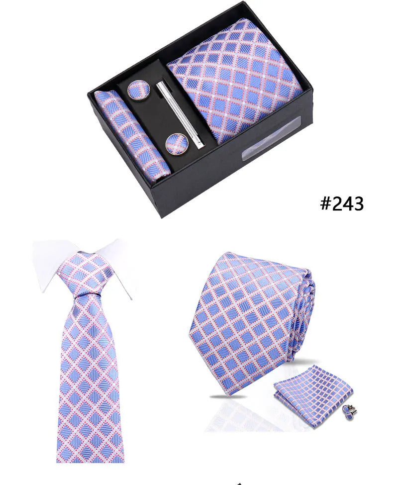 领带男Wedding Gift Tie Wholesale New Style Pocket Squares Set Cufflinks Tie Clip Necktie Box Men Fit Wedding Blue Paisley Black Boxs
