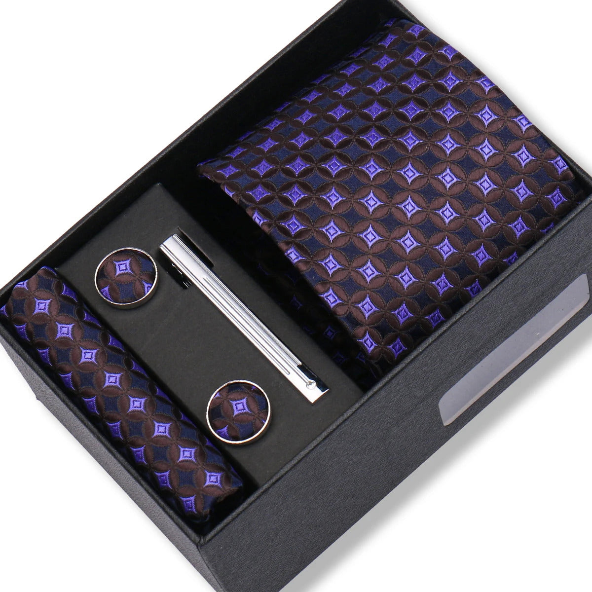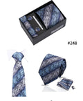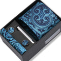 Wedding Gift Tie Wholesale New Style Pocket Squares Set Cufflinks Tie Clip Necktie Box Men Fit Wedding Blue Paisley Black Boxs