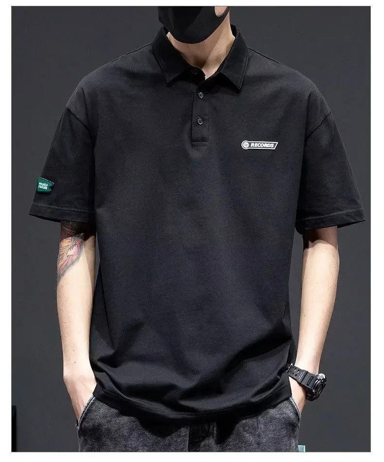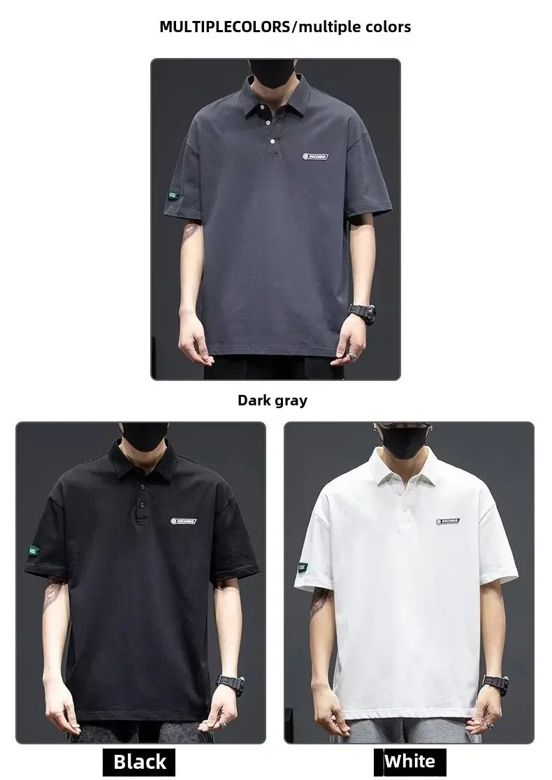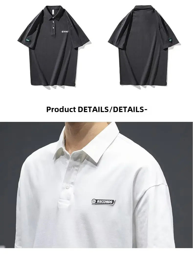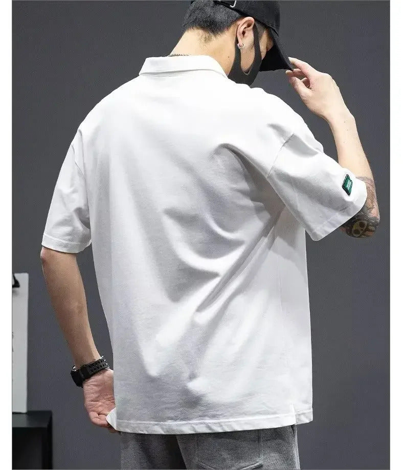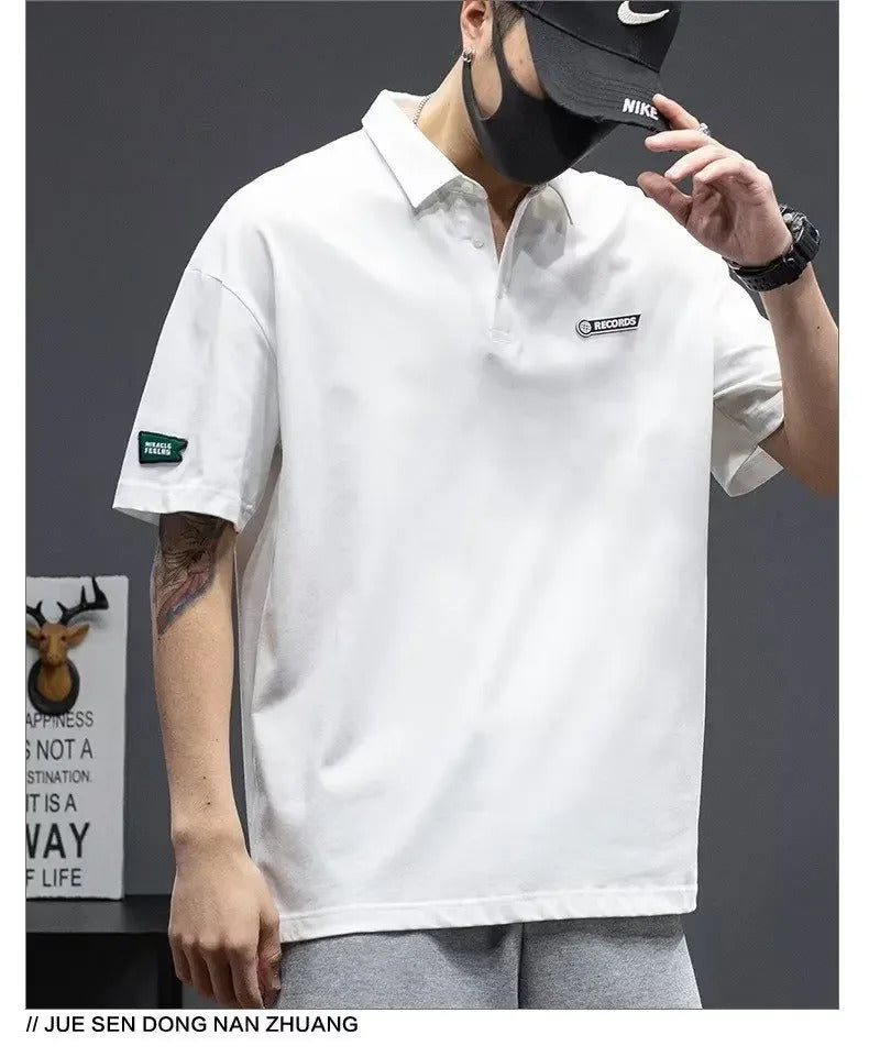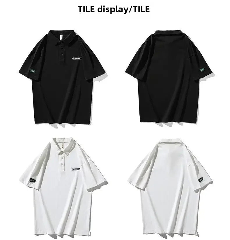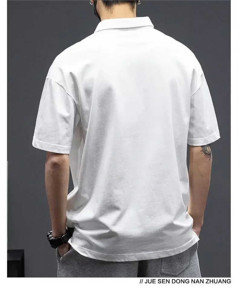 POLO男White Cotton Polo Shirt Short Sleeves Loose Fit American Style Design Sensibility T-shirt Trendy For Young Men Summer