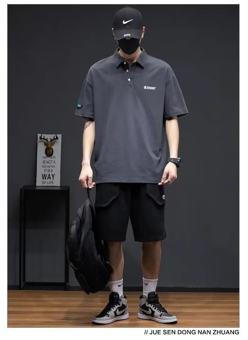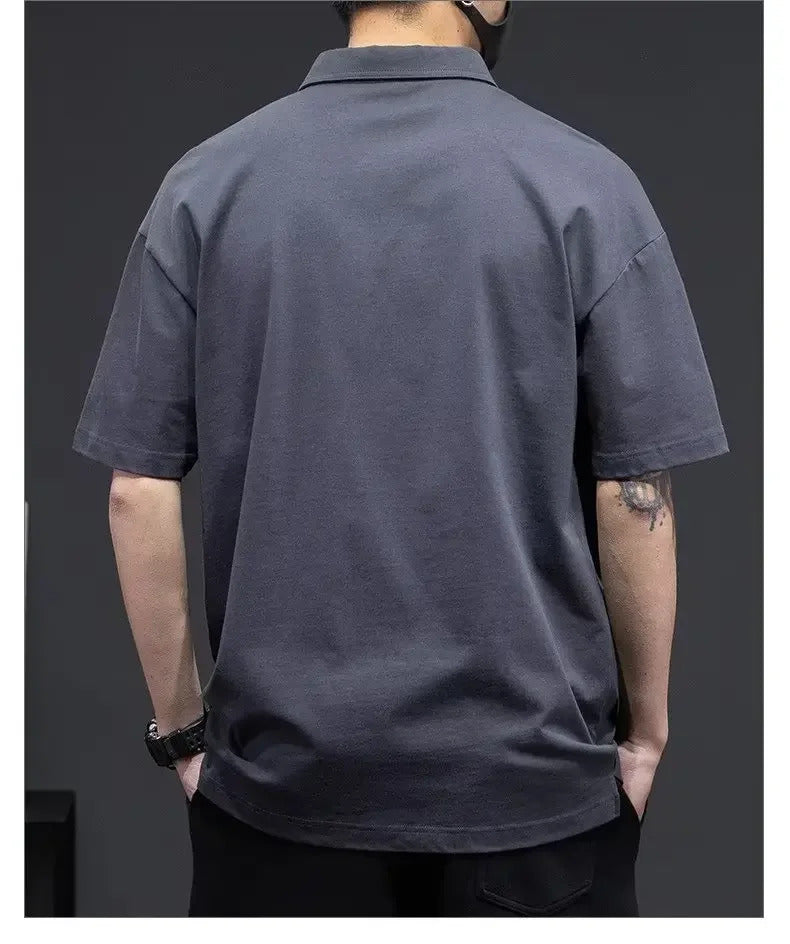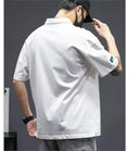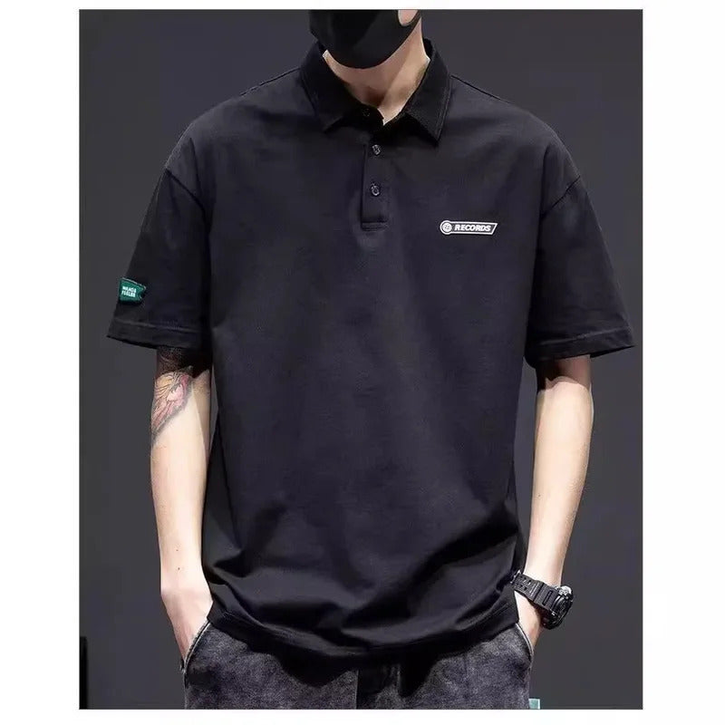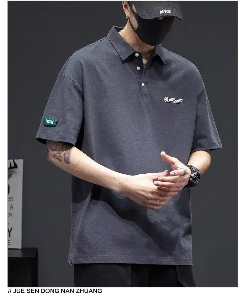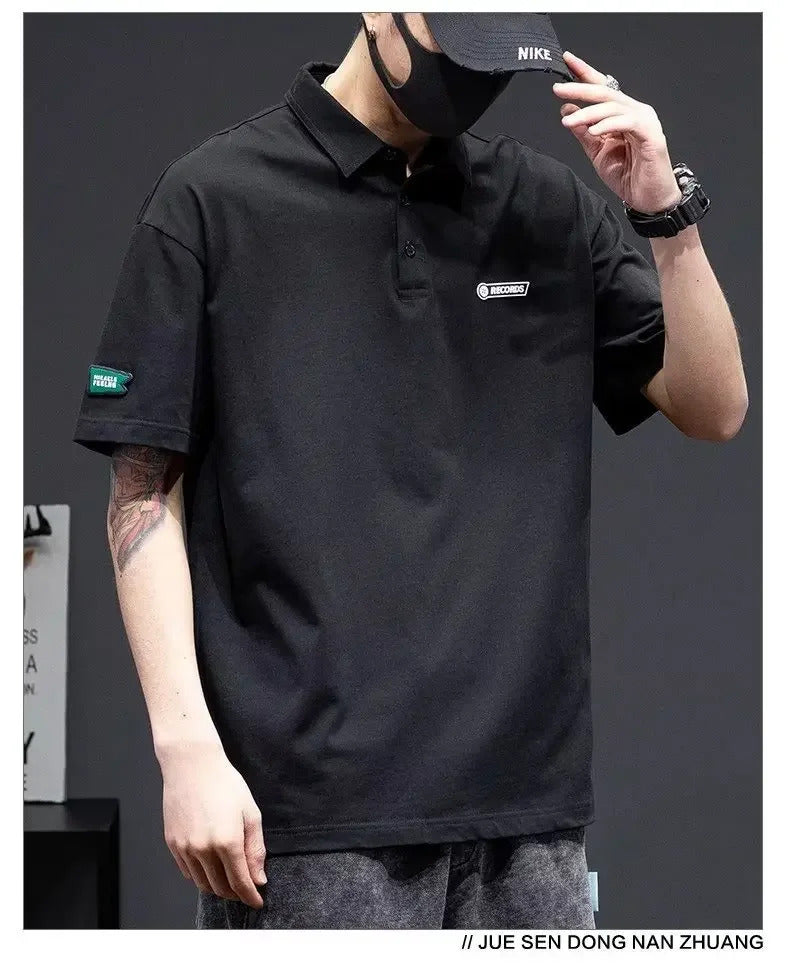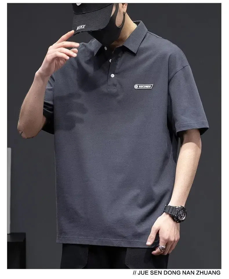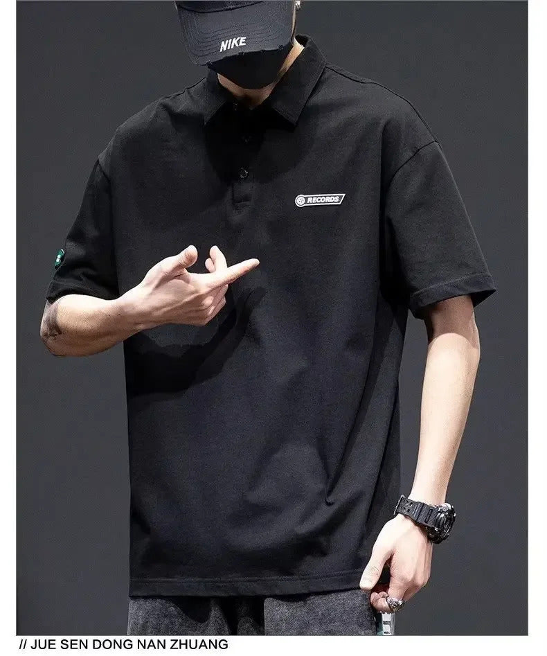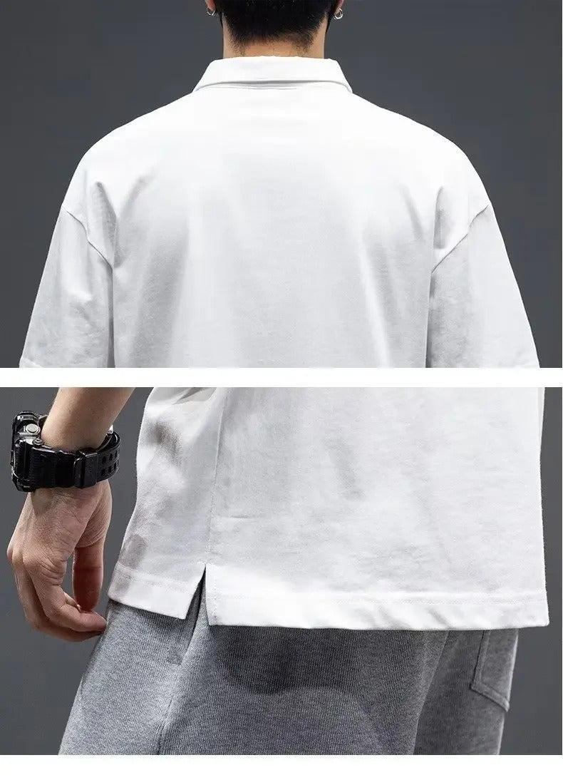 POLO男White Cotton Polo Shirt Short Sleeves Loose Fit American Style Design Sensibility T-shirt Trendy For Young Men Summer