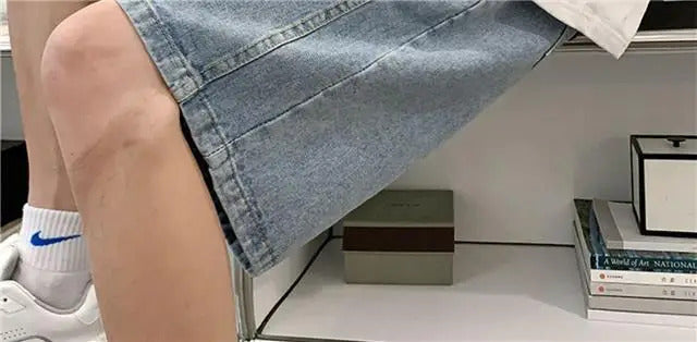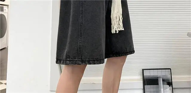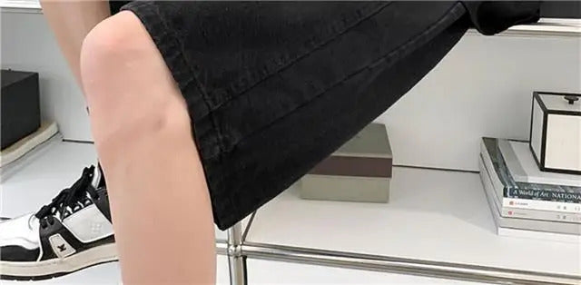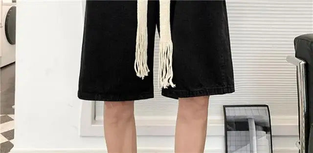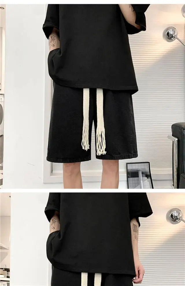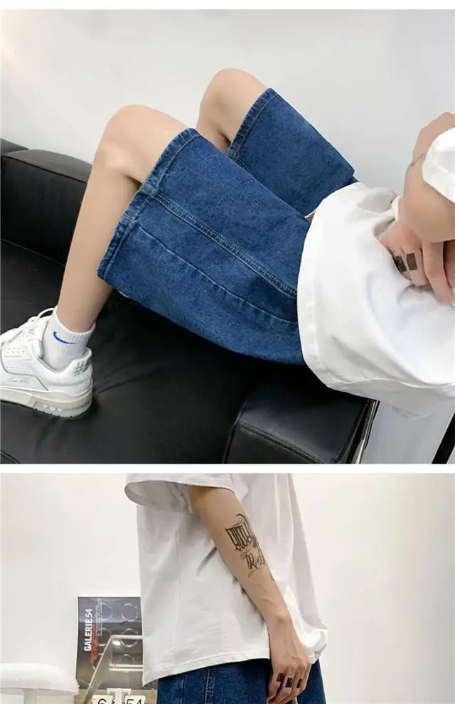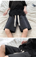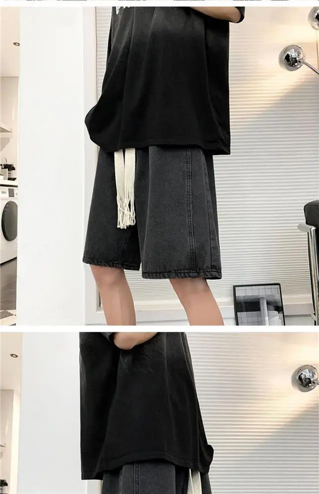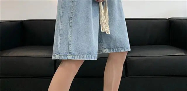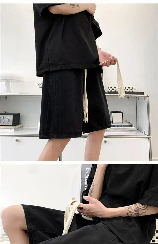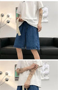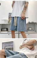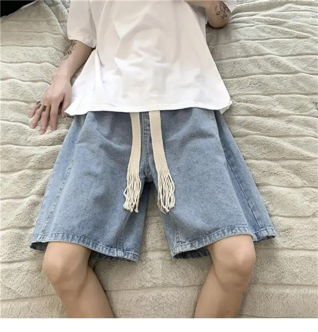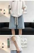 短裤男Wide Leg Baggy Denim Shorts Men Summer Thin Solid Color Casual Loose Simple Knee-length 5 Point Pants Drawstring Straight Shorts