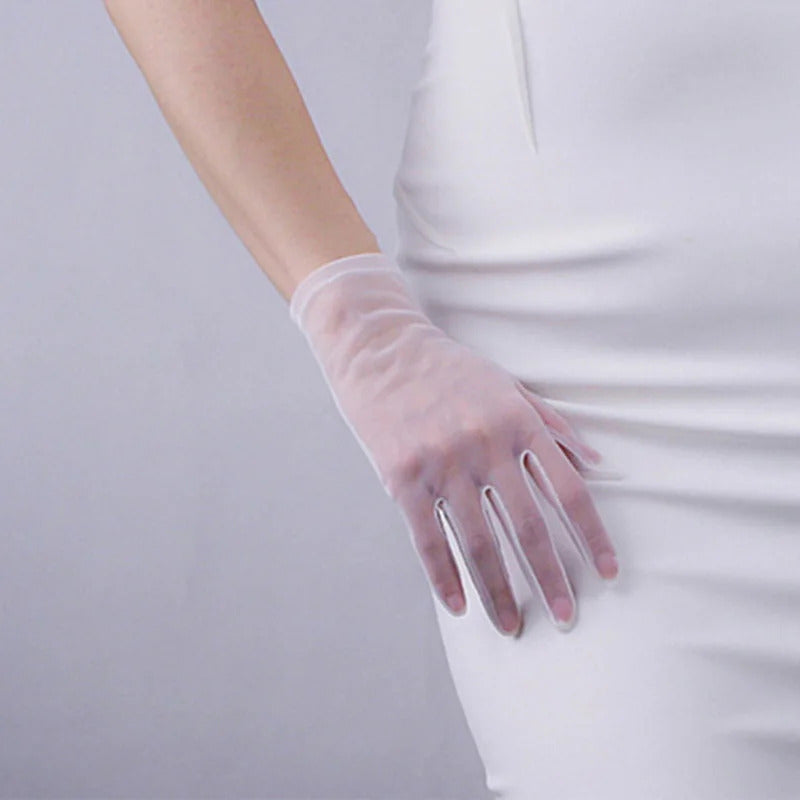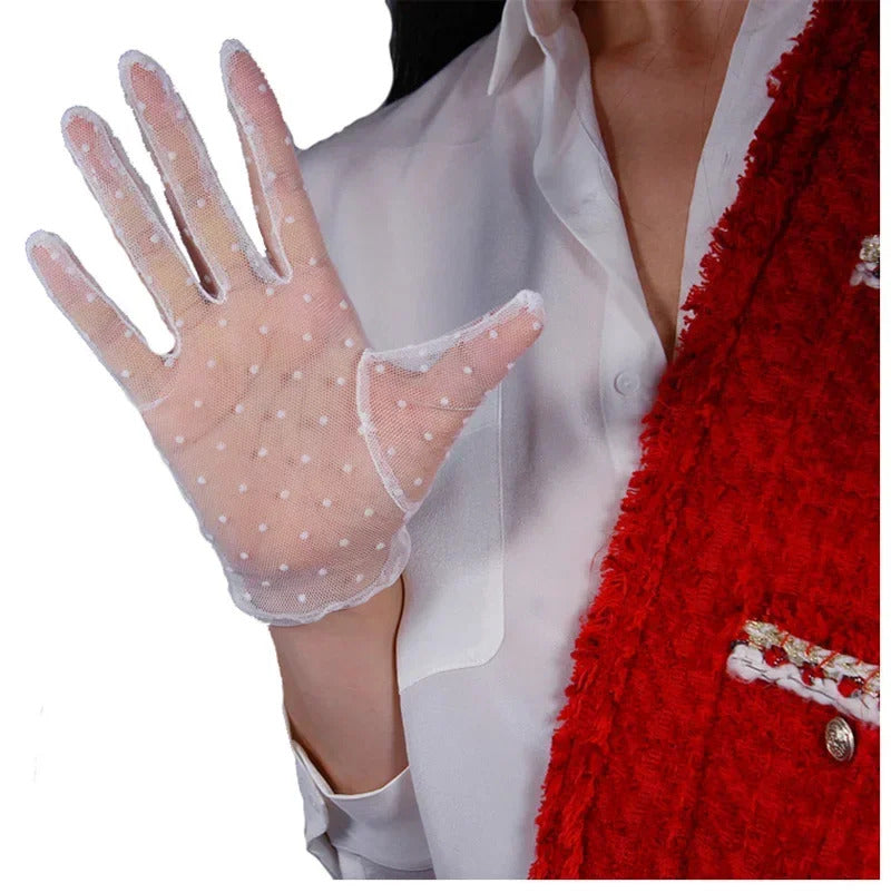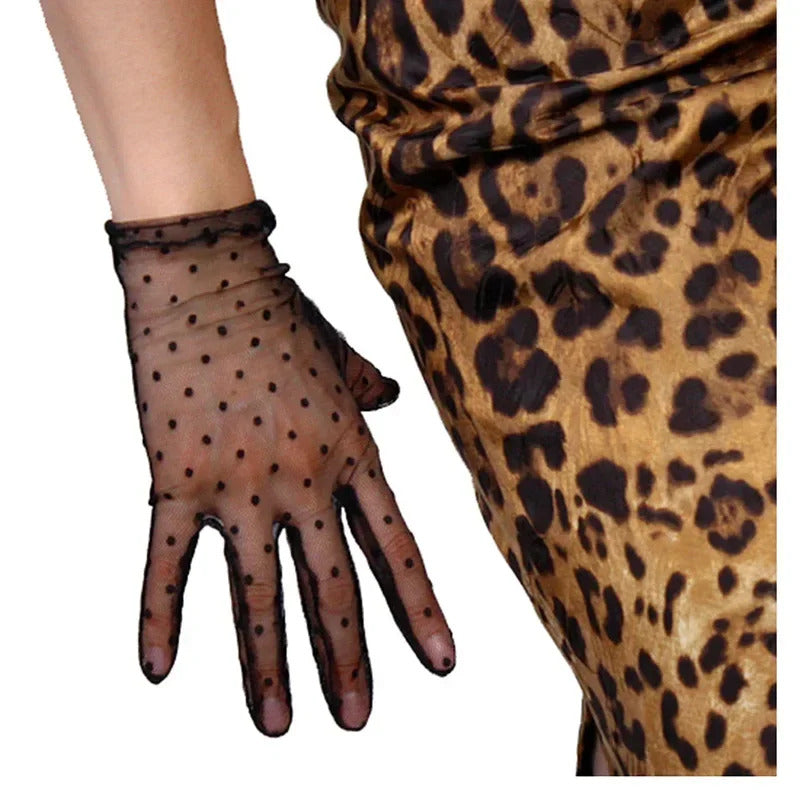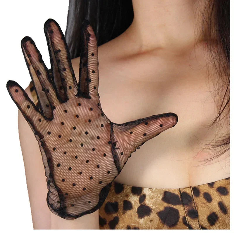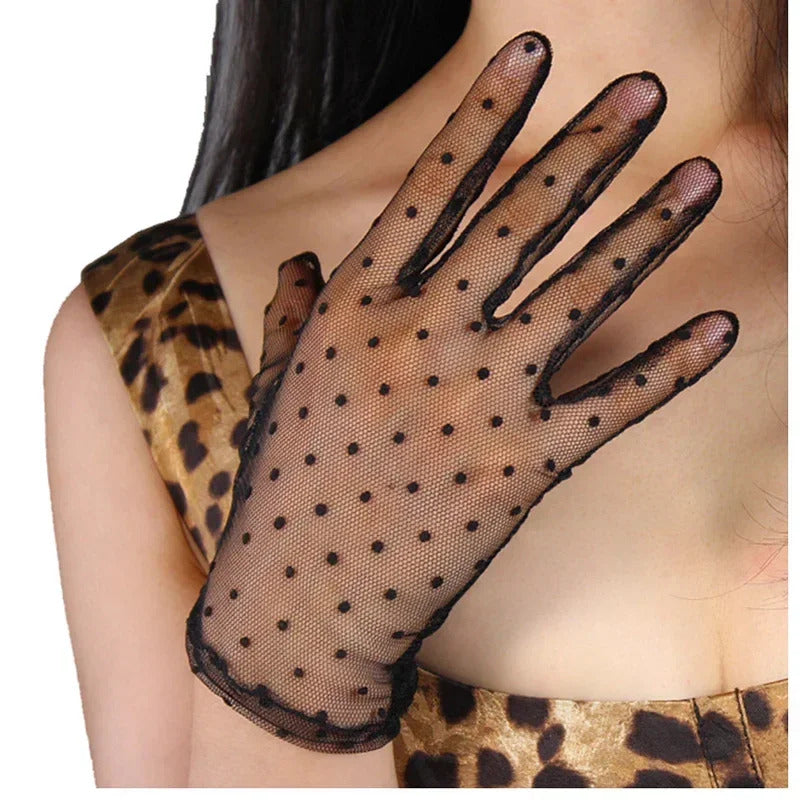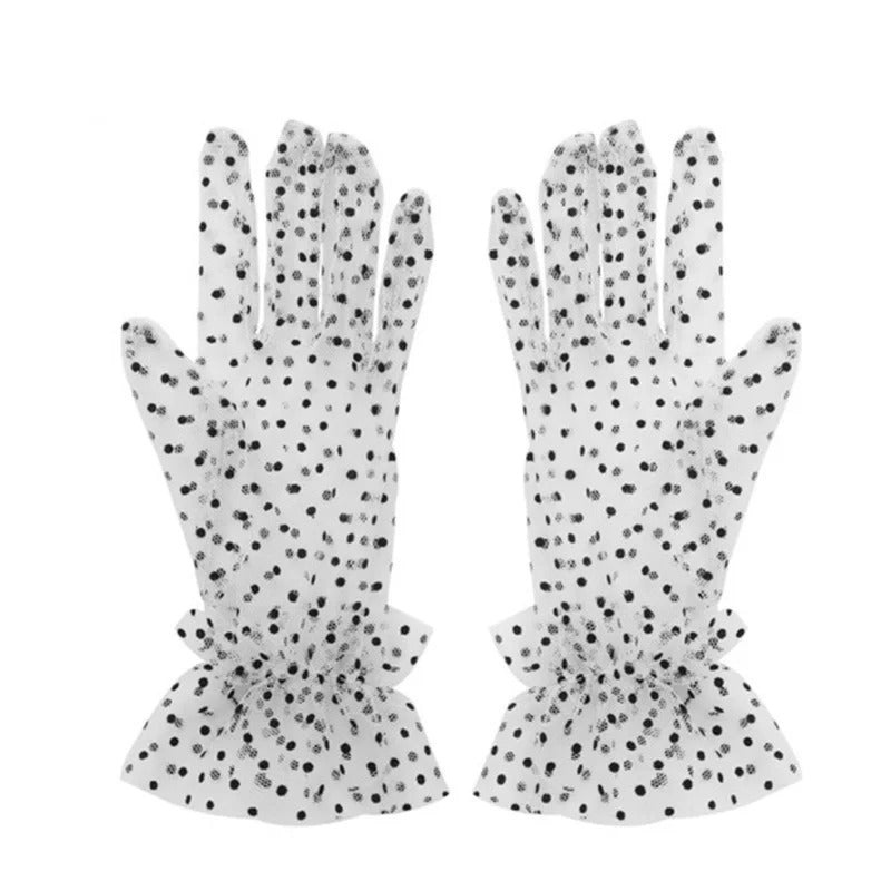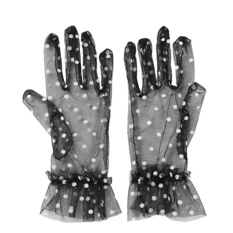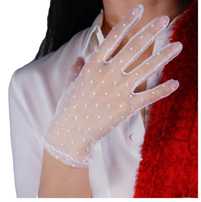 防晒手套女Women Thin Transparent Mesh Flocking Polka Dot Wedding Dress Gloves Female Summer Sunscreen Anti-UV Lace Driving Mittens L84