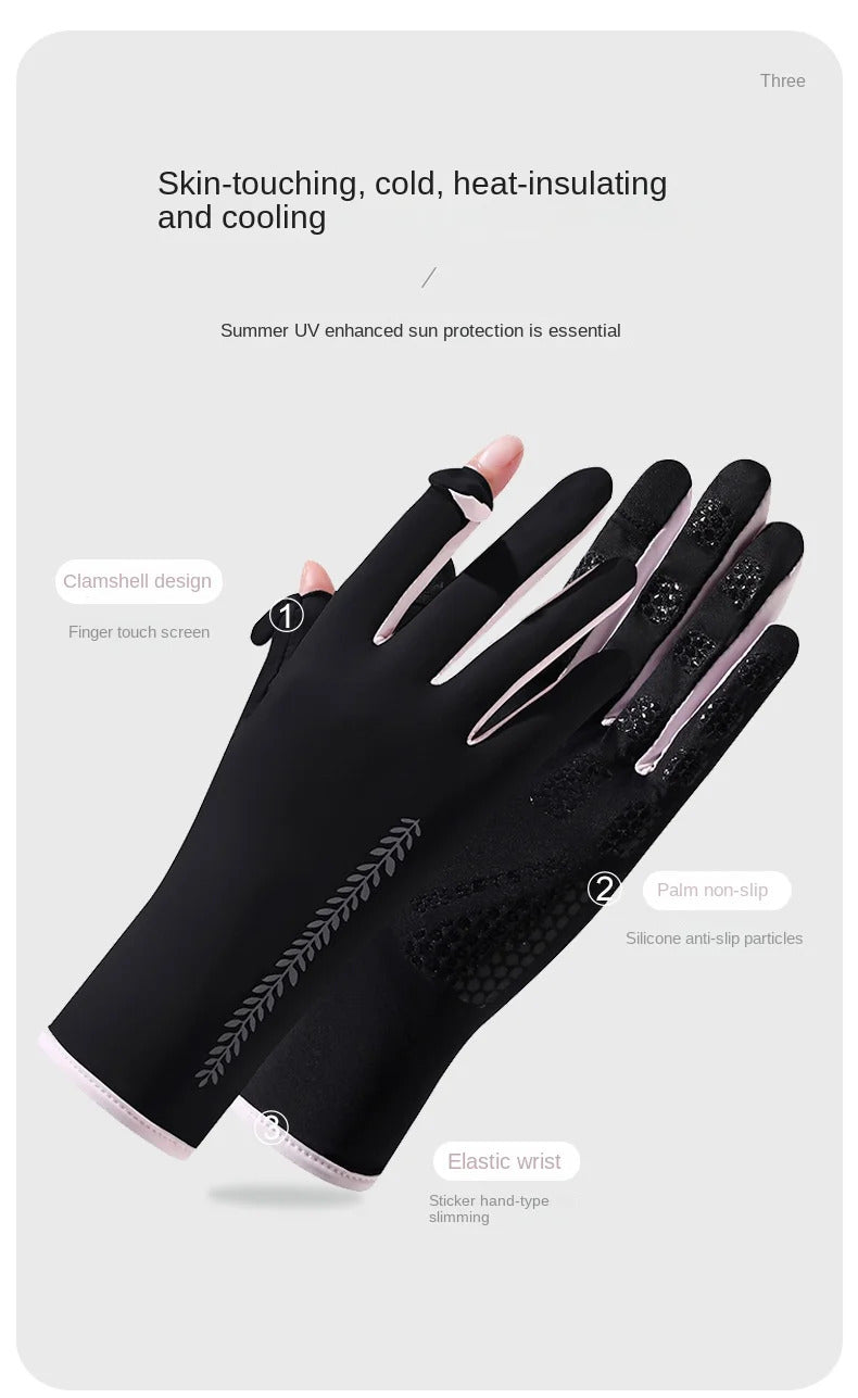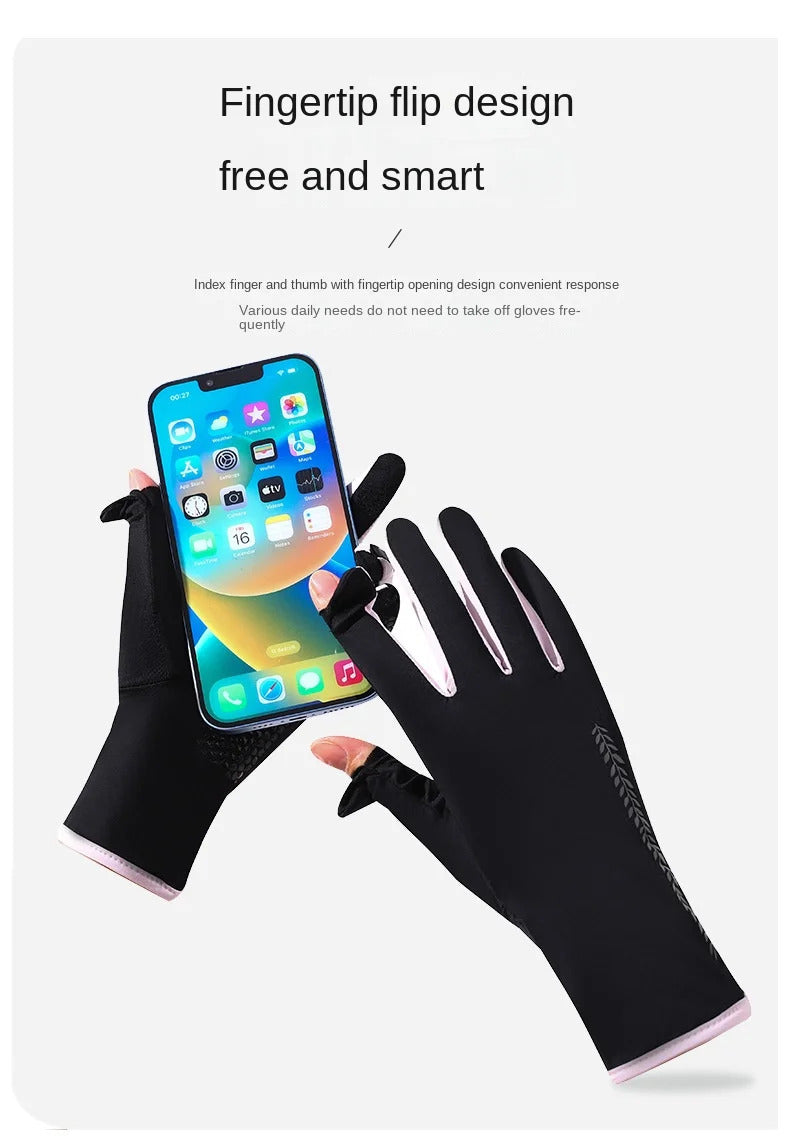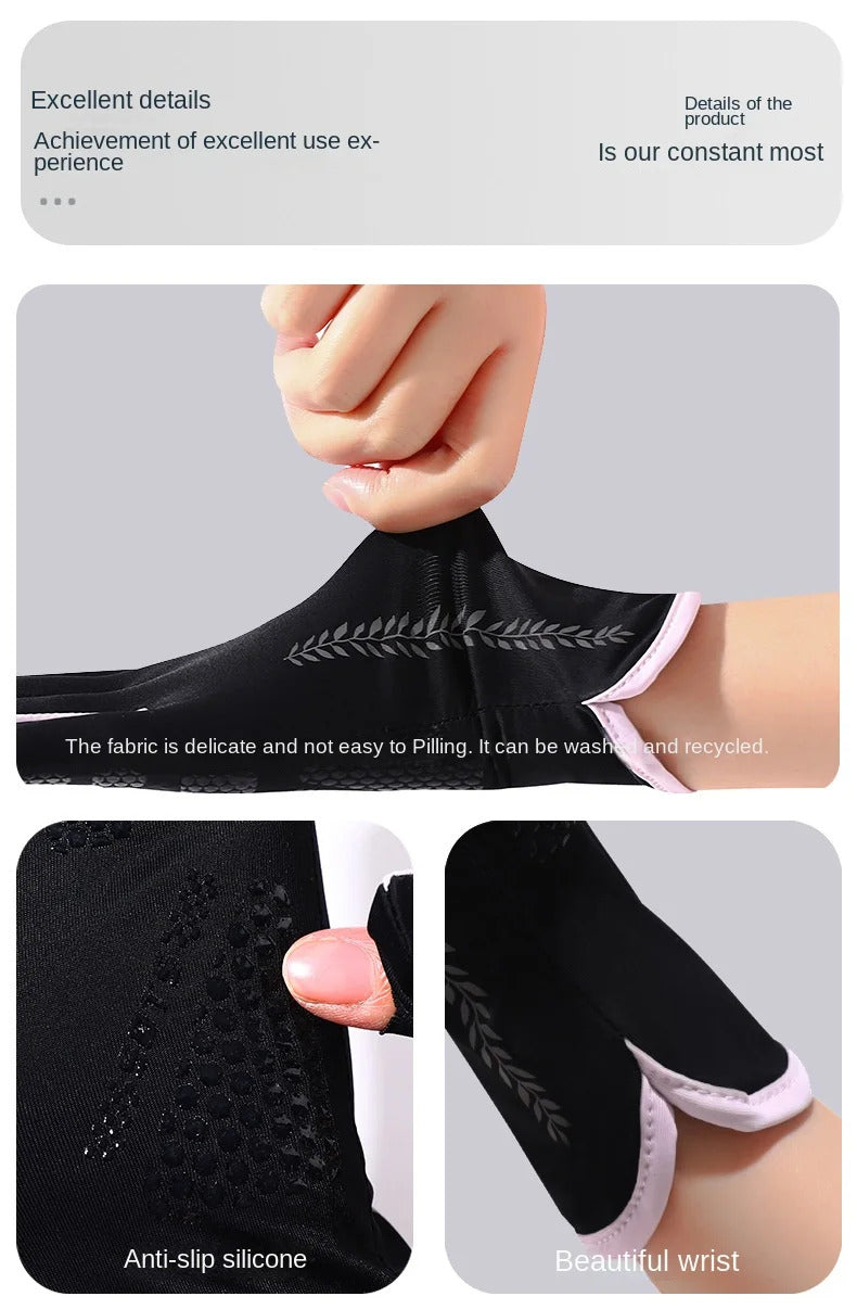 防晒手套女Women's Sunscreen Ice Silk Breathable Gloves Summer Sunscreen Fashion Cycling Driving Running Gloves Thin UV Protection Gloves