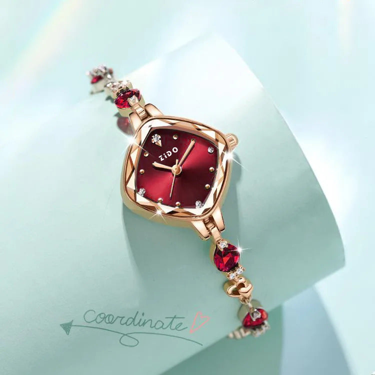 手表女Women's Watch Brand Red High Beauty Luxury Crystal Diamond Metal Bracelet Waterproof Diamond Female Fashion Clock Watches gift