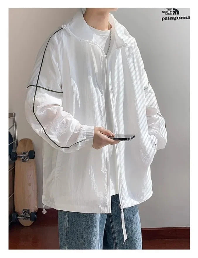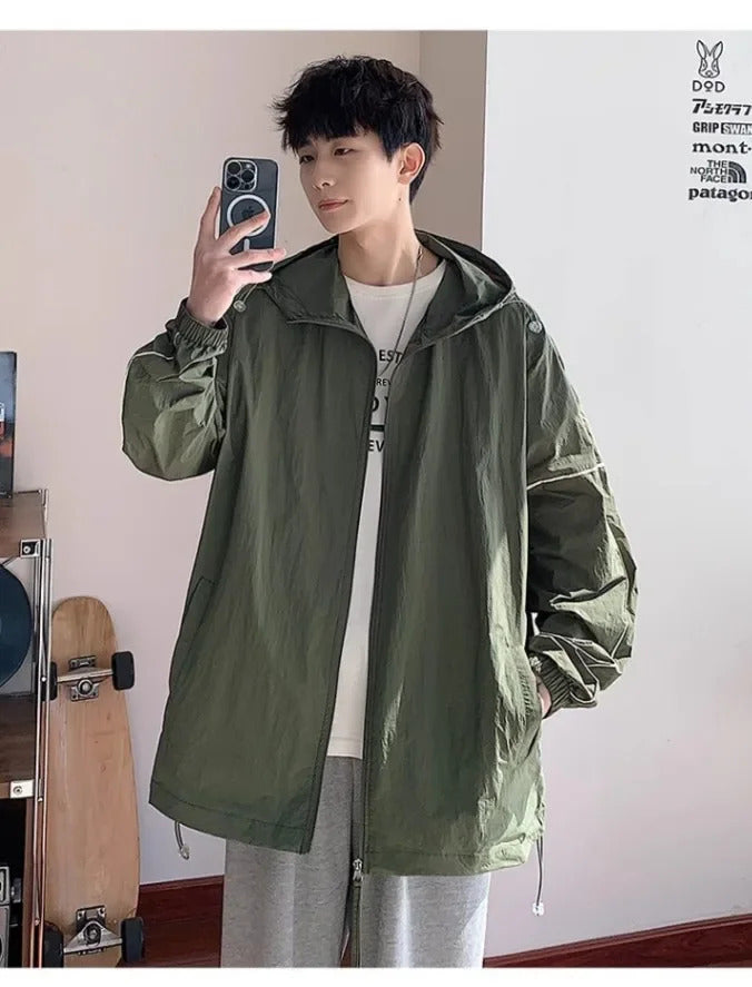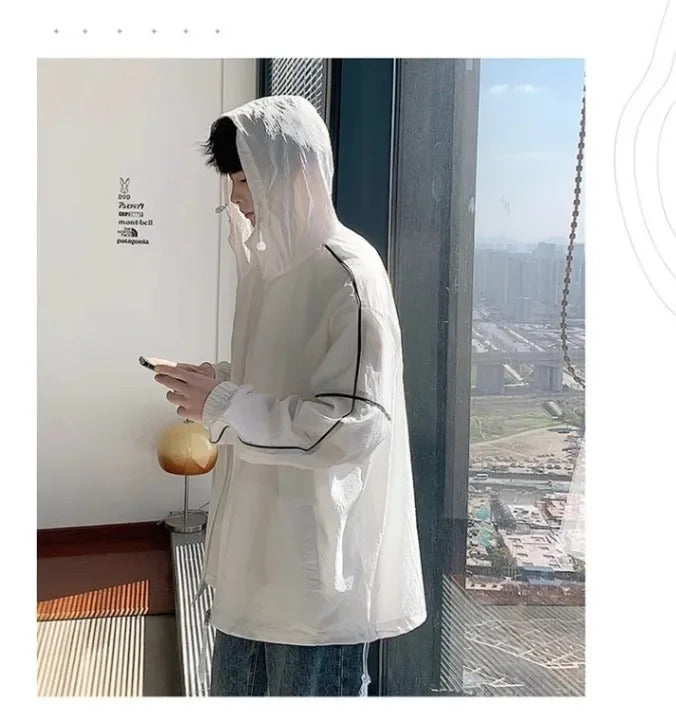 防晒衣男Youth Sunscreen Clothes Men's Lightweight Summer Hooded Jacket Ice Silk Breathable Skin Clothes Trendy Brand Plus Size Sunscreen